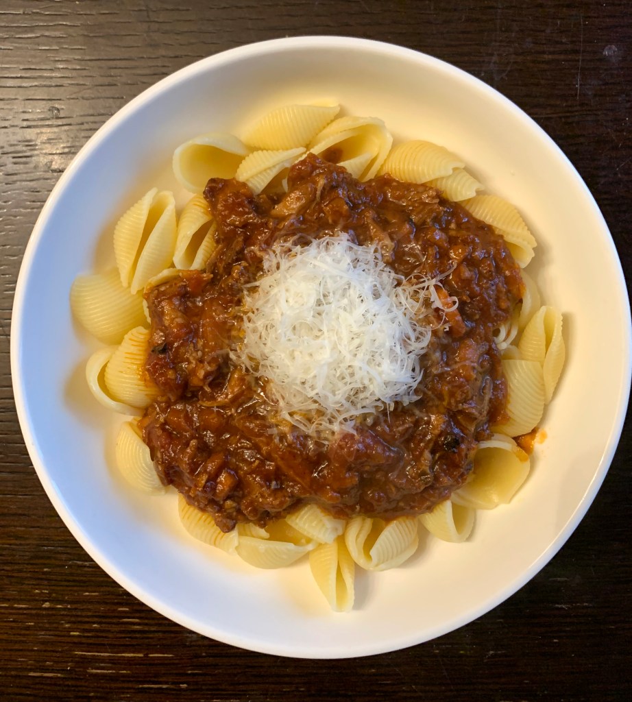 Couldn’t dredge up enough emotional energy to make fresh pasta, so I used boxed. It was fine. Not quite as transcendent as 5-hour ragù over freshly made pasta, but still delicious.